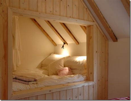 I have always wanted a bed like this… Or something similar to it only with a window and curtains that I could pull closed and shut out the world. I would crawl in and just stay with my books forever. Cozy.